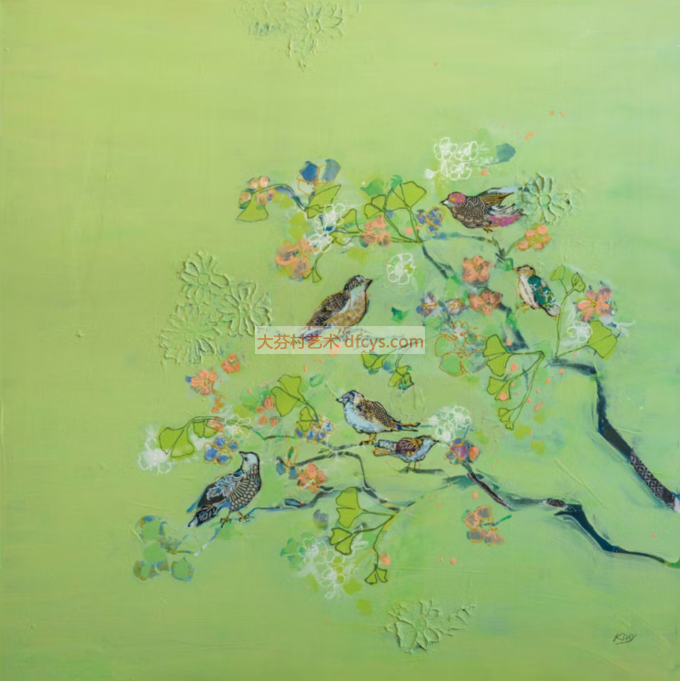 《鸟群派对》 抽象装饰画 大芬村油画