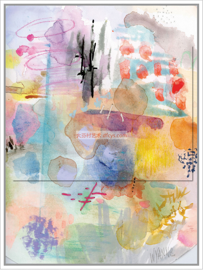 蓝色水生抽象风景框装帆布墙画 大芬村油画