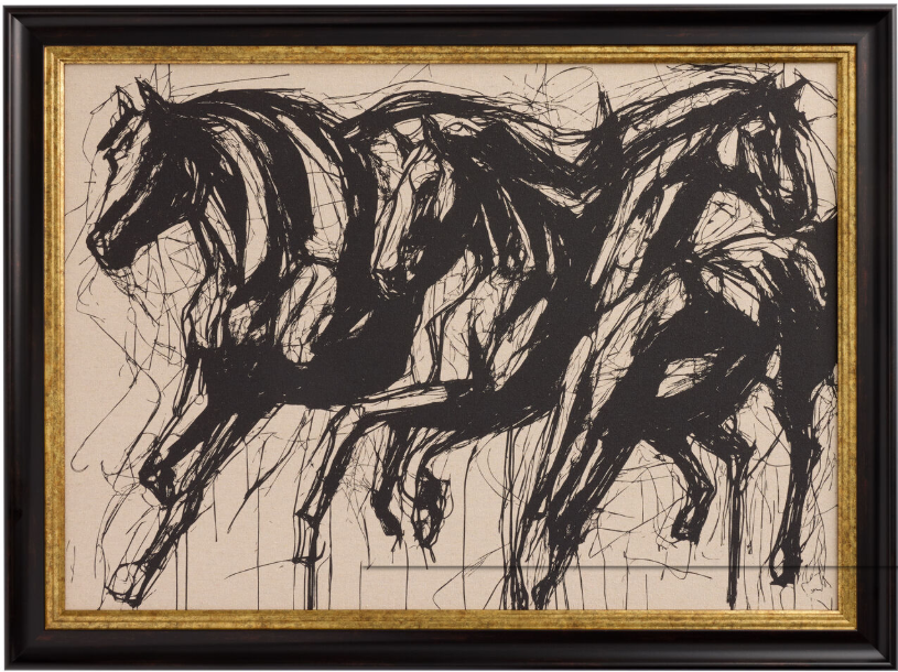三匹黑马抽象画框亚麻布墙饰 大芬村油画