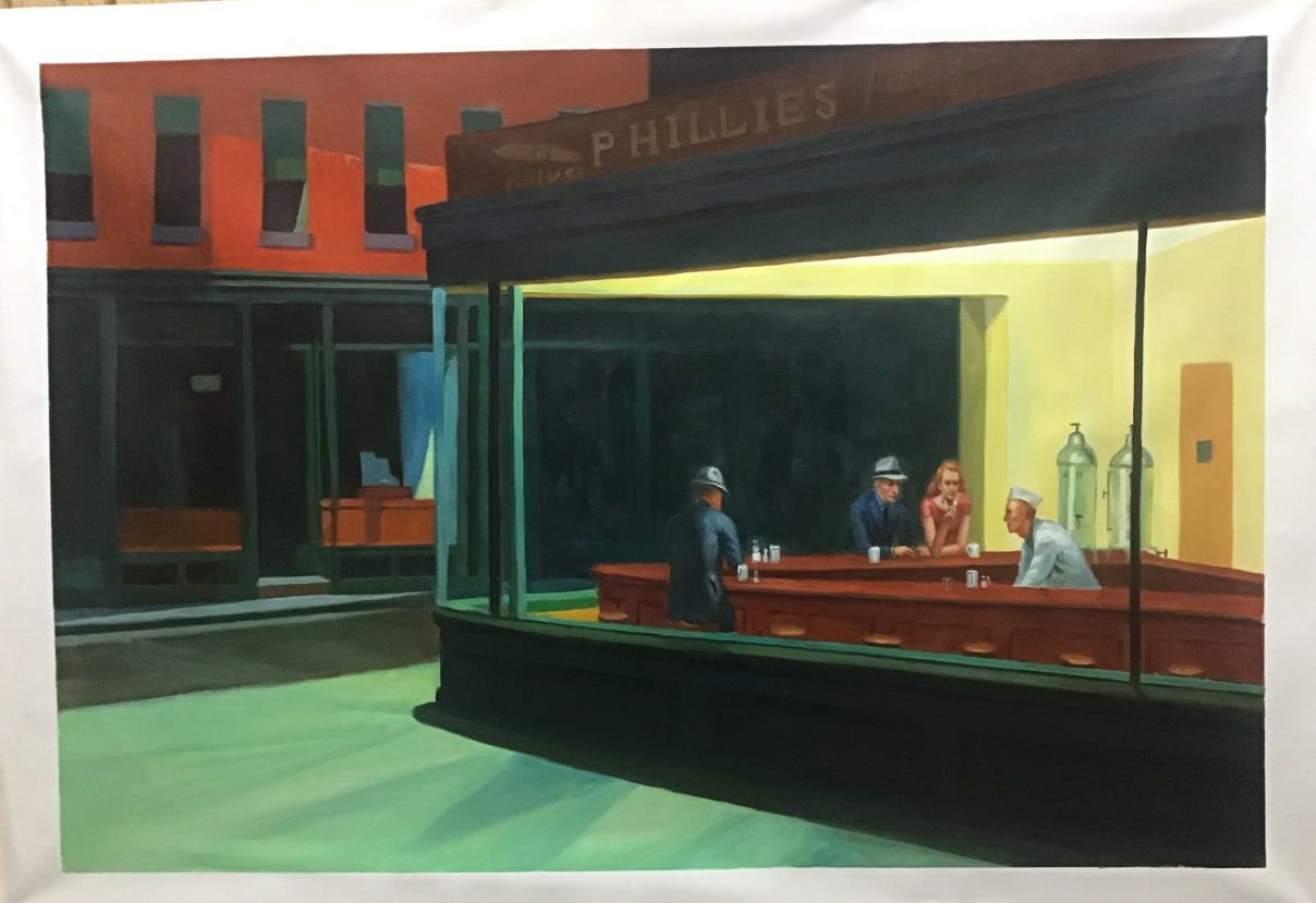 爱德华·霍珀的夜鹰 高品质油画临摹 大芬村